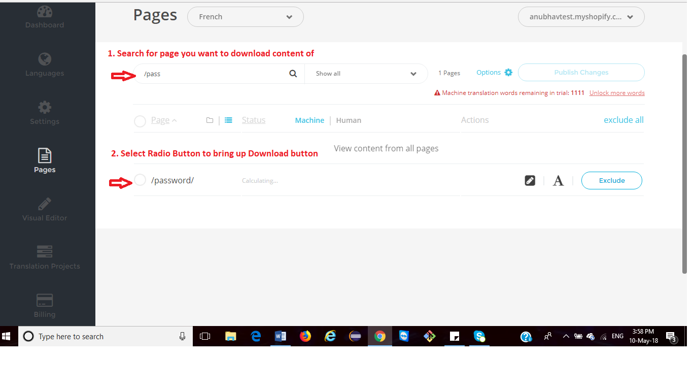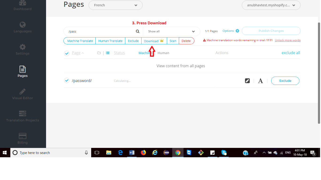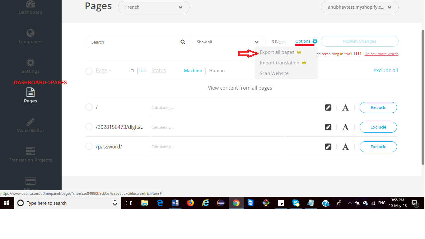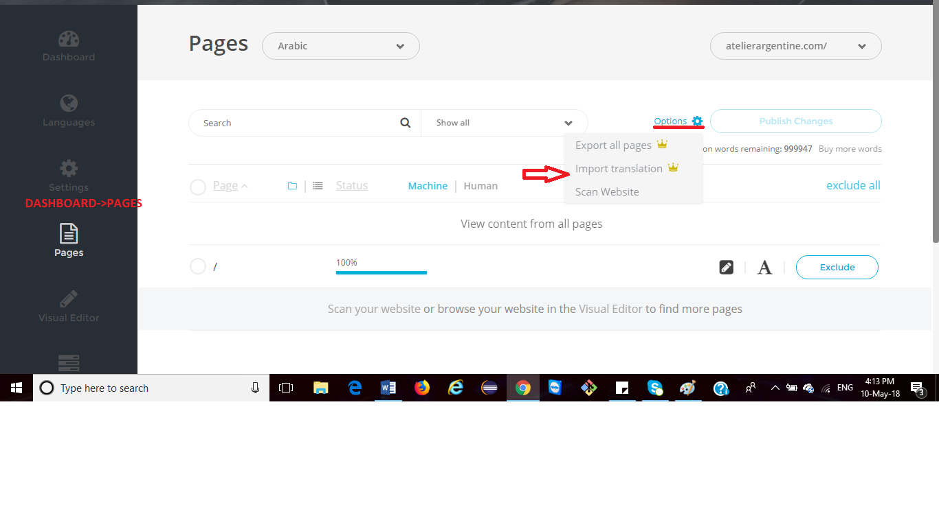 1 - Go to Dashboard->Pages->Options->Import Translations.